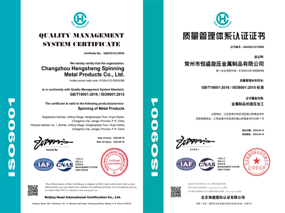 恒盛旋壓始終注重技術創(chuàng)新和可持續(xù)發(fā)展常州市恒盛旋壓金屬制品有限公司是一家專業(yè)生產旋壓件、沖壓件、拉升件的公司。公司具有強有力研發(fā)、生產、銷售的精英團隊。恒盛旋壓是一個具有創(chuàng)新科技型企業(yè),創(chuàng)新能力是恒盛旋壓的核心競爭力,創(chuàng)新使恒盛旋壓實現(xiàn)了跨越式的發(fā)展,恒盛旋壓在企業(yè)內部完善了創(chuàng)新機制,形成了獨特的創(chuàng)新文化。公司擁有著國內外領先的數(shù)控旋壓工藝技術,多年來長期和國外多國進行數(shù)控旋壓技術交流與合作。公司堅定不移的立足科技創(chuàng)新,潛心產品技術研發(fā),注重產品品質和誠信服務,匯集了一批專業(yè)技術領域